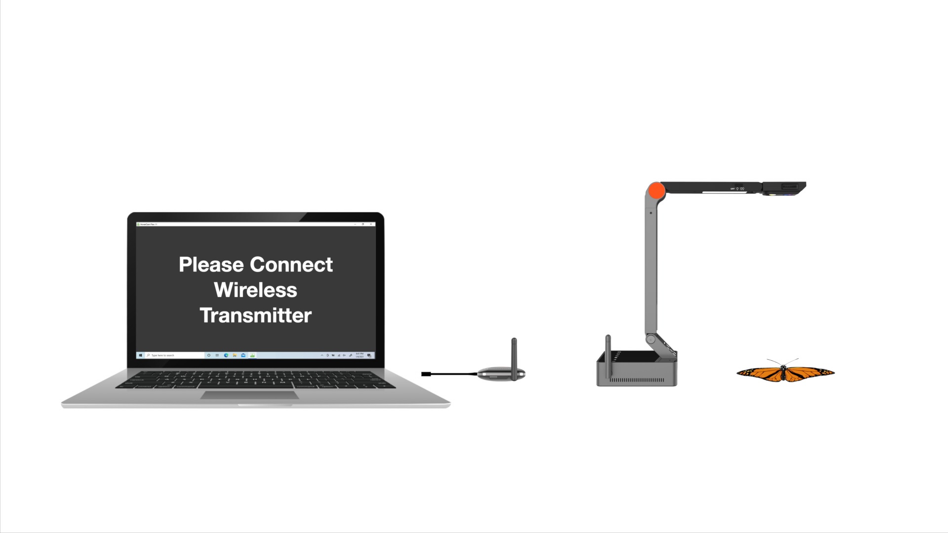 Orbit includes a wireless transmitter that you plug into a PC, Mac, Chromebook or Android Interactive Panel via USB, or to your display via HDMI.