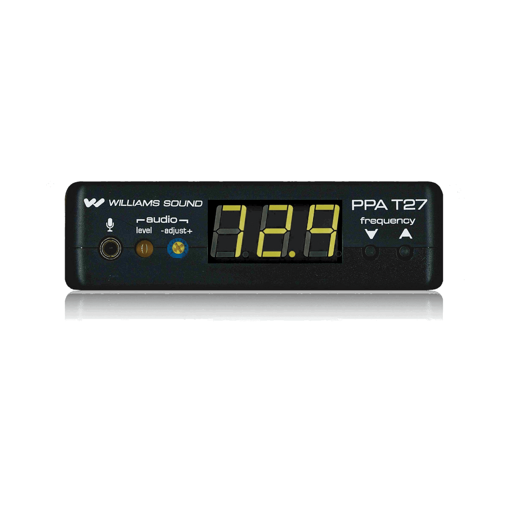 The FM ADA Kit 1 includes a transmitter that wirelessly broadcasts a speaker’s voice, music program, or audio service up to 1000 feet. The speaker can easily connect a microphone with a 3.5mm plug to broadcast their voice. They can also connect to a sound system using an RCA jack to play music or other audio. Up to two guests can listen to the broadcasted audio with the FM receivers with earphones or neckloops.