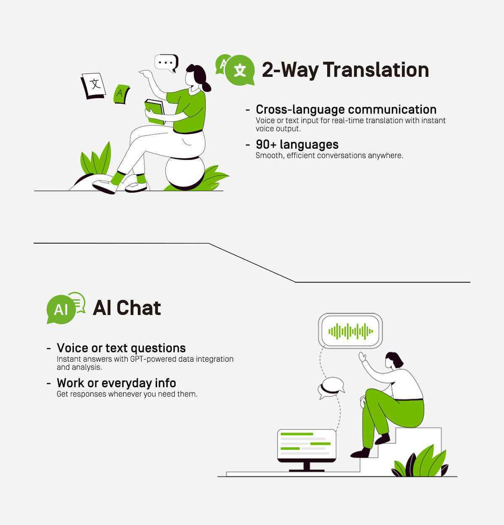 Capturing Meeting Insights: Offering real-time transcription and translation for meetings, presentations, and negotiations, it ensures clear communication across languages, enhances productivity, and enables smooth collaboration during business travel or international partnerships.